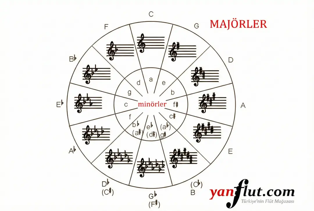 Müzikteki tüm tonların birbiriyle olan ilişkisini gösteren, müzisyenlerin en büyük yardımcısı olan tablodur. Aşağıdaki görselde, saat yönünde ilerledikçe diyezlerin, saat yönünün tersine gidildikçe bemollerin nasıl arttığını görebilirsiniz.